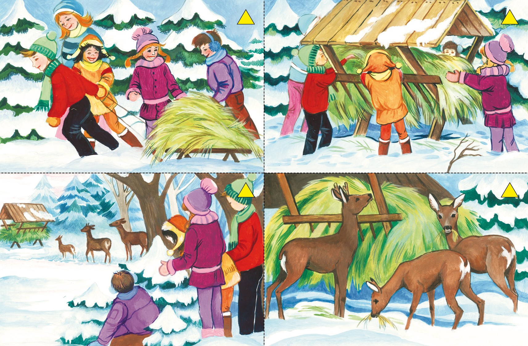 Układanie obrazków każde dziecko będzie postrzegało jako dobrą zabawę. Rozbudzona ciekawość i chęć poznania dalszej części historyjki będą motywowały do wykonania zadania. Największą zachętą będzie jednak końcowy efekt – duża ilustracja, która powstanie po odwróceniu poprawnie ułożonych obrazków.