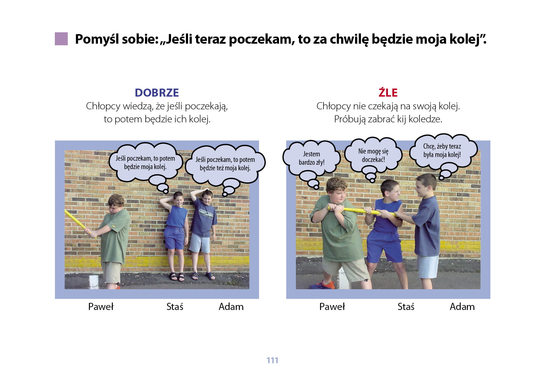 Większość umiejętności społecznych człowieka polega na tym, że w umyśle potrafi on przyjąć perspektywę drugiej osoby. Te umiejętności społeczne nie są jednak oczywiste dla osób z autyzmem, dlatego należy ich uczyć w wyrazisty sposób. I właśnie to jest celem Ilustrowanego podręcznika umiejętności społecznych: dzielimy umiejętności społeczne na mniejsze elementy i jasno pokazujemy, jak należy się zachować i co powiedzieć w danych sytuacjach społecznych. Na książkę Ilustrowany podręcznik umiejętności społecznych składają się zestawy specjalnie przygotowanych zdjęć, na których dzieci krok po kroku demonstrują rozmaite umiejętności społeczne. Forma podobna do komiksu umożliwia uczniom wykorzystanie atutów postrzegania wzrokowego i dzięki temu ułatwia skupienie uwagi oraz zrozumienie przedstawionych treści. Kolorowe fotografie ukazują „dobry” oraz „zły” sposób zachowania się w każdej sytuacji, a także pozytywne i negatywne skutki danego postępowania. Ilustrowany podręcznik umiejętności społecznych został zaprojektowany tak, by nauczyciel lub rodzic mógł strona po stronie wiele razy omawiać każdy etap zdobywania danej umiejętności. Dzieci mogą następnie samodzielnie lub w grupie odgrywać poszczególne umiejętności, aż do chwili gdy będą się czuły wystarczająco pewnie, by przećwiczyć je w codziennych interakcjach.