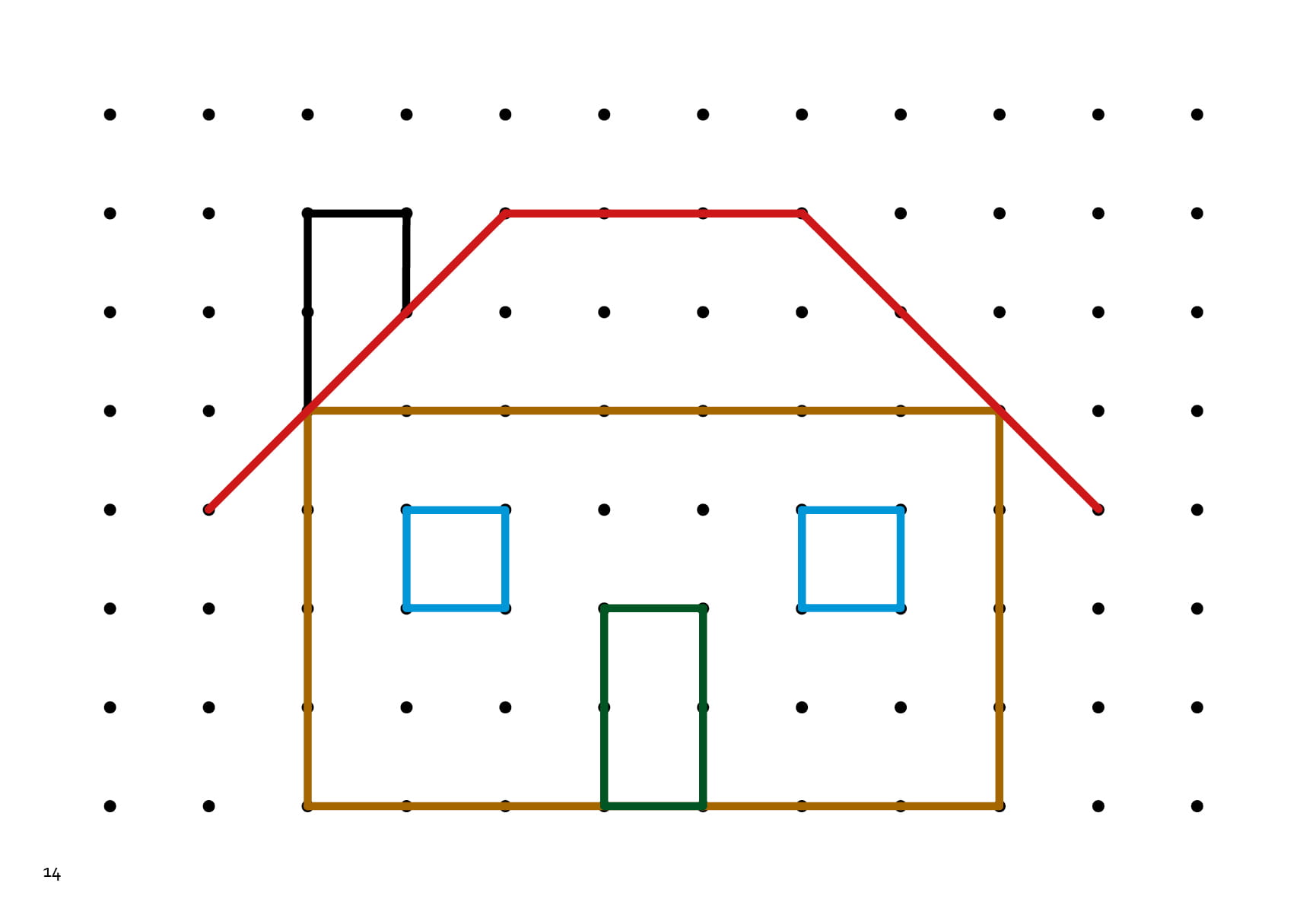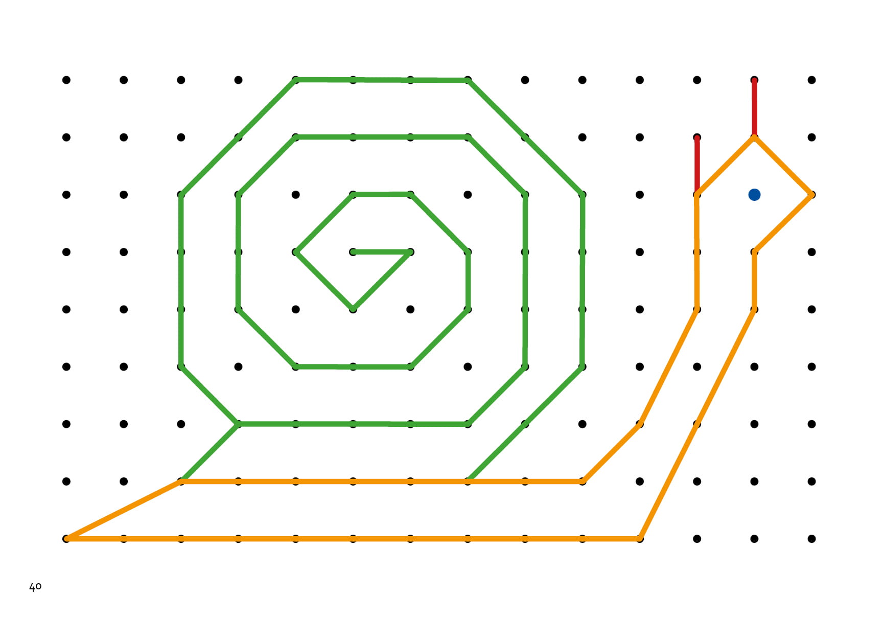 Publikacja składa się z 30 rysunków umieszczonych na siatkach zbudowanych z kropek, ułożonych według wzrastającego stopnia trudności. Zadaniem dziecka jest jak najdokładniejsze odwzorowanie ich na sąsiadujących kartach.
