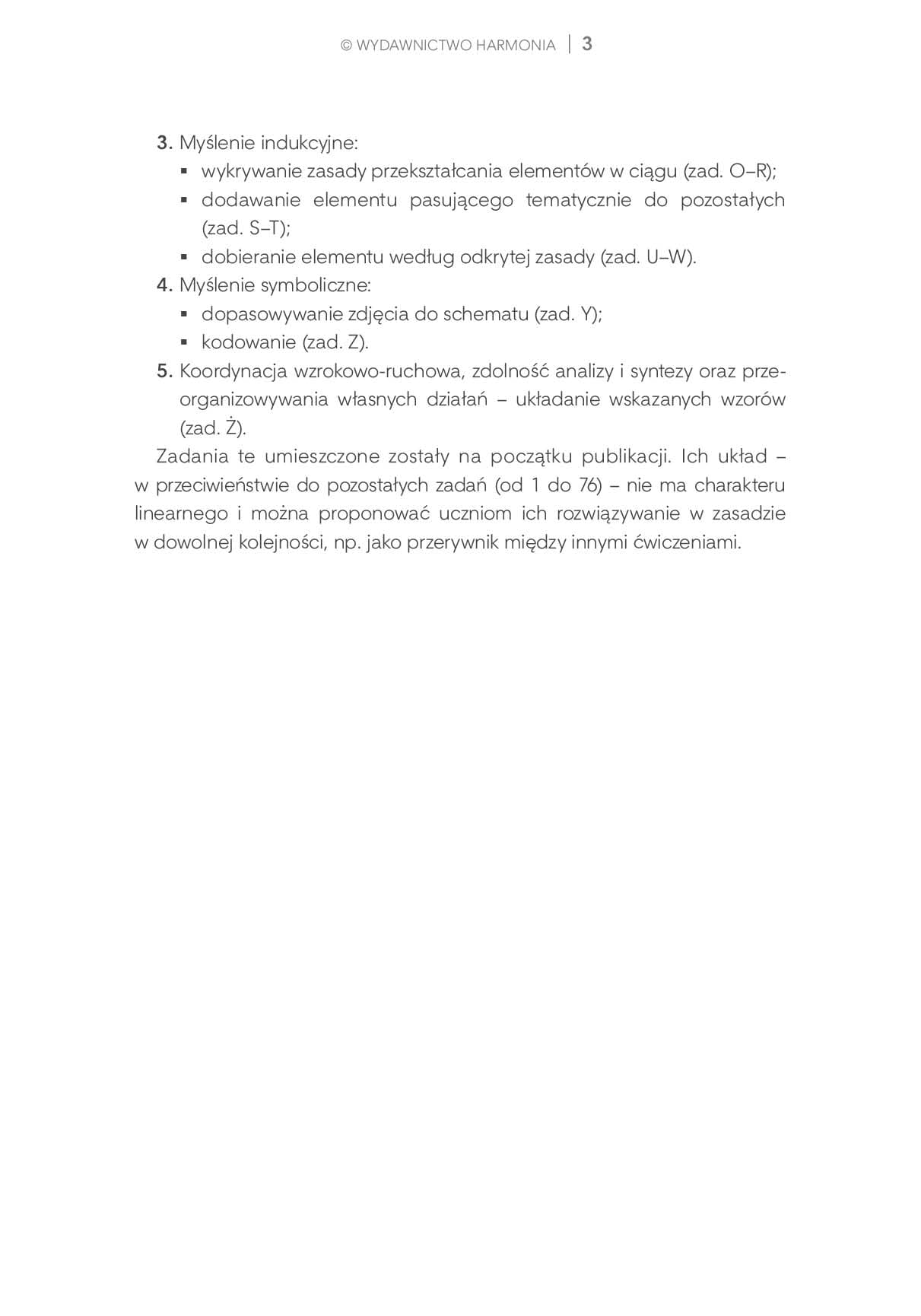Proponowane ćwiczenia mają przede wszystkim ułatwić dziecku zrozumienie aspektu porządkowego, miarowego i algebraicznego liczby. Ponadto zamieszczone zostały również zadania mające na celu ćwiczenie operacji myślowych – analizy, syntezy, abstrahowania, uogólniania, porównywania i myślenia symbolicznego – niezbędnych w rozwiązywaniu problemów, w tym matematycznych.