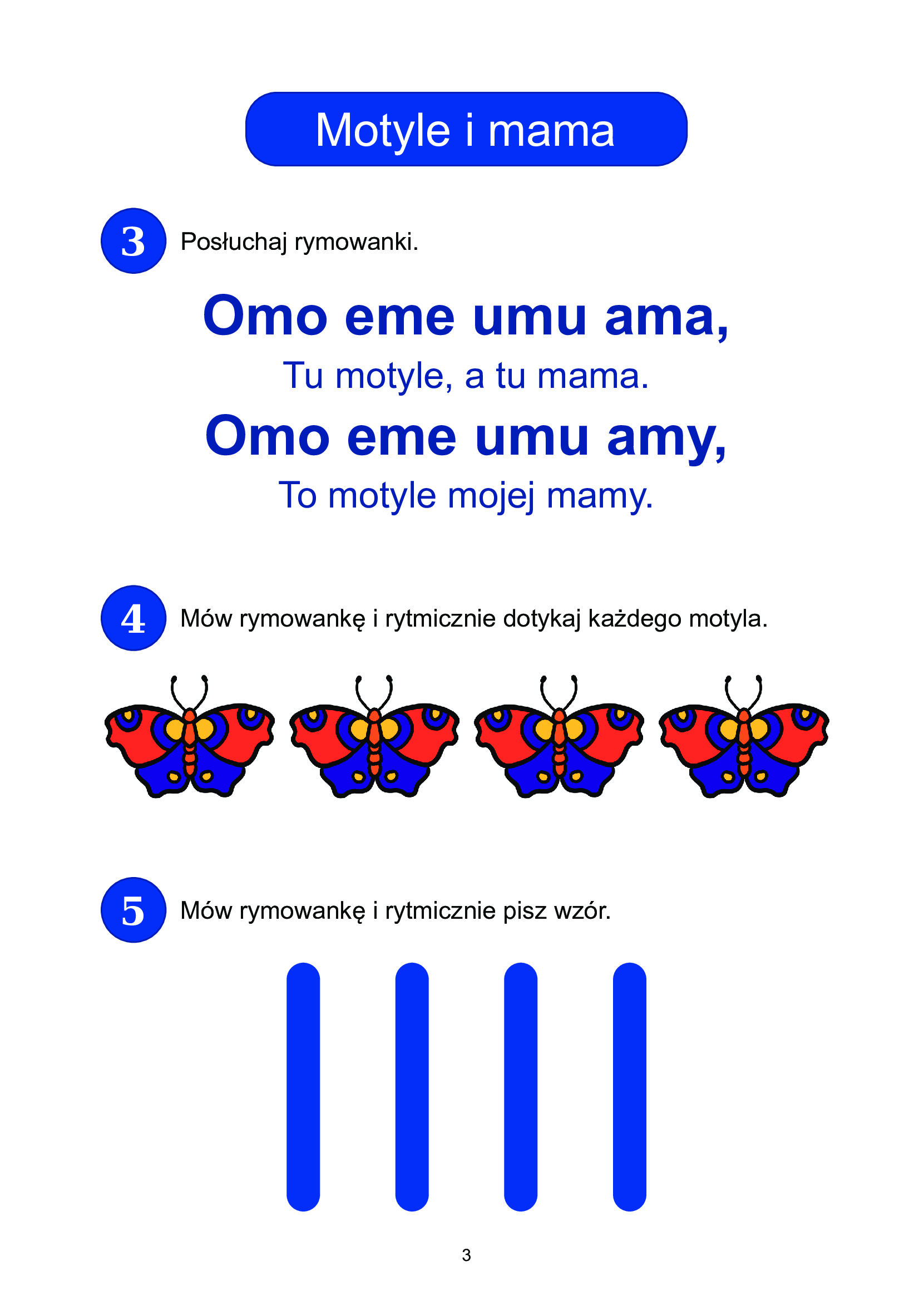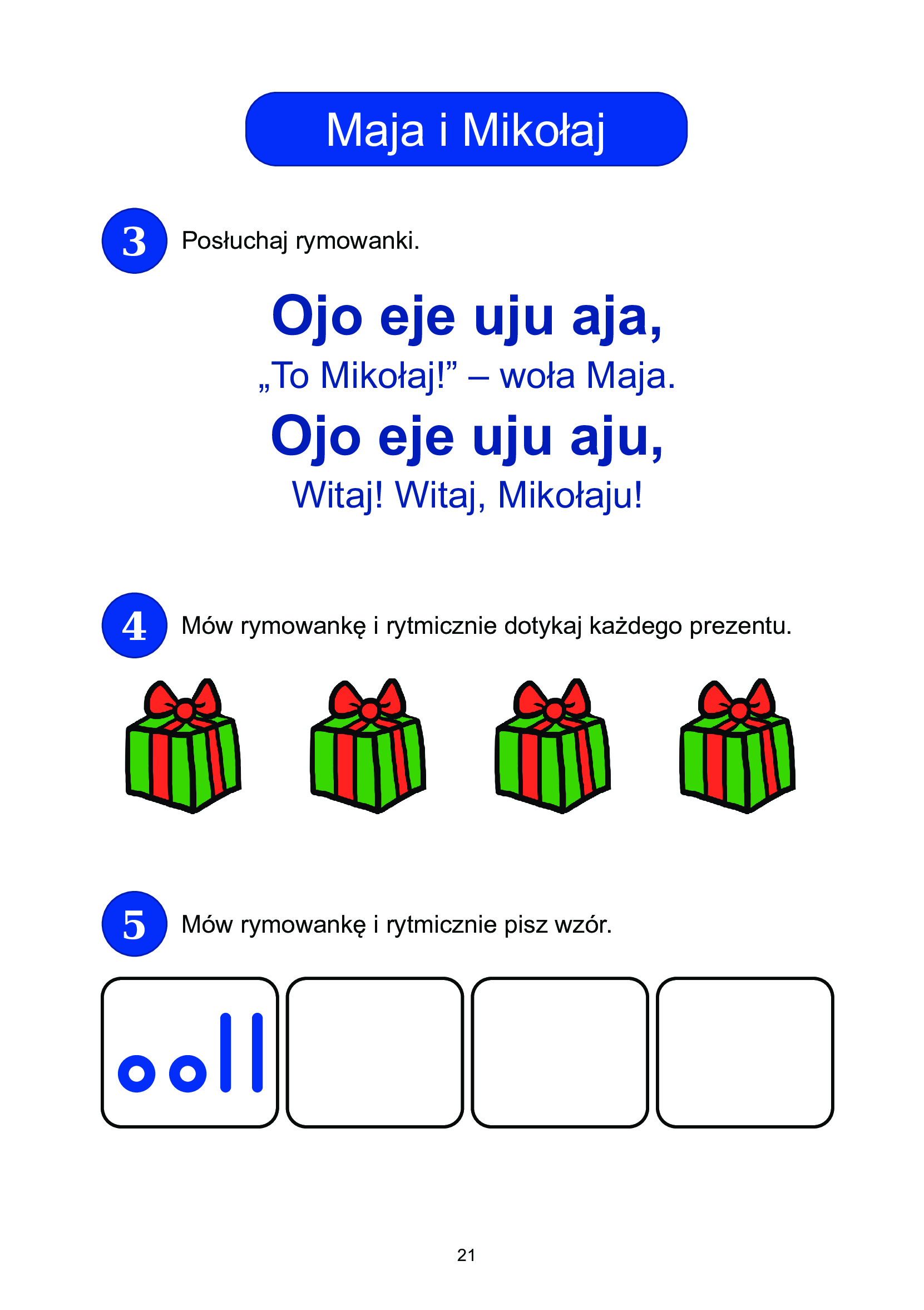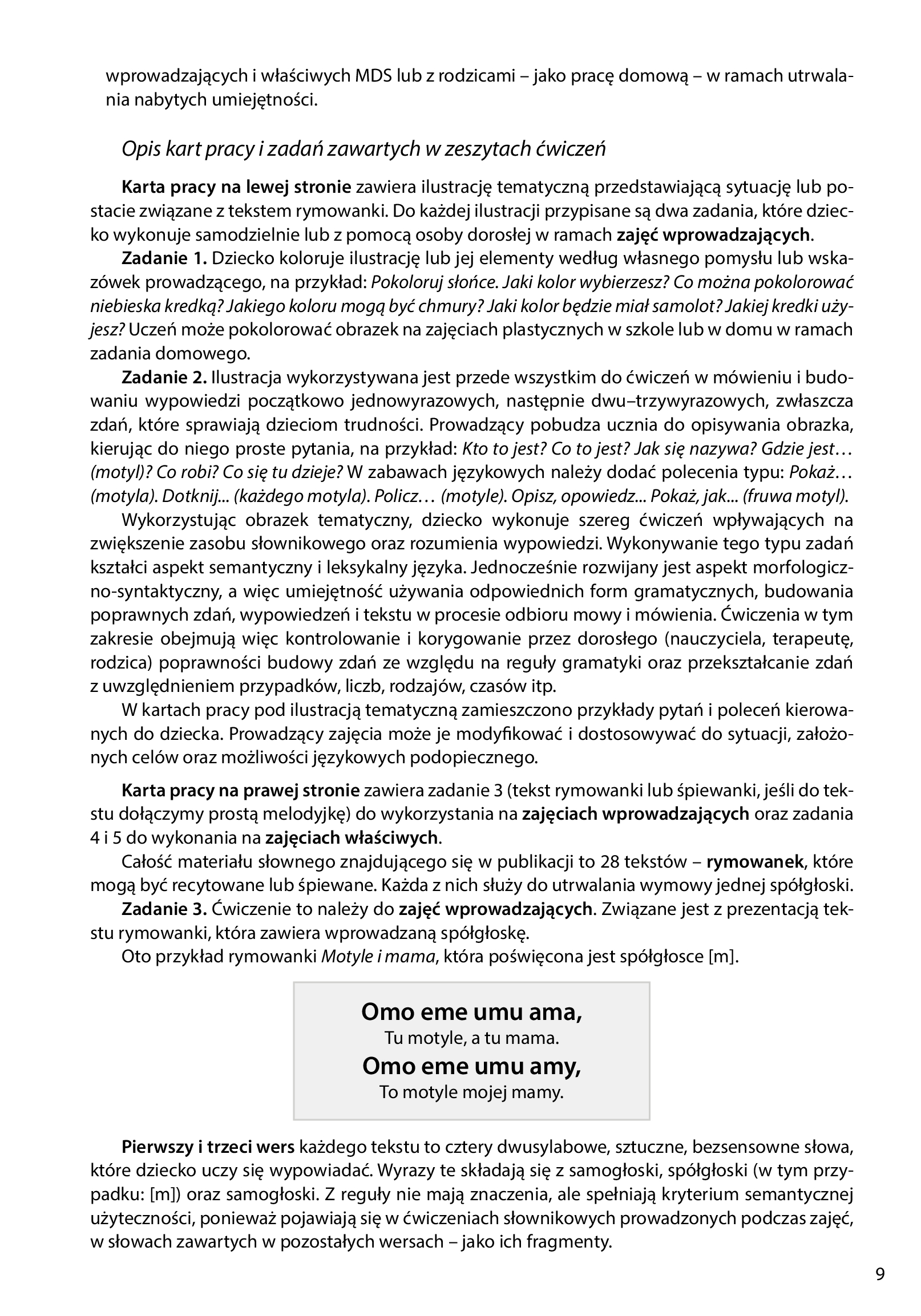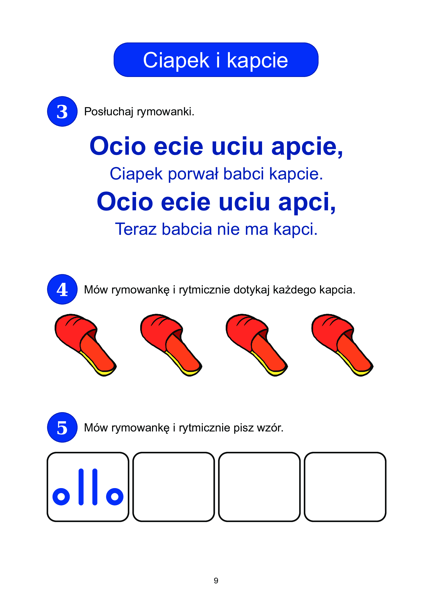 - dwa zeszyty ćwiczeń z ilustracjami i tekstami rymowanek