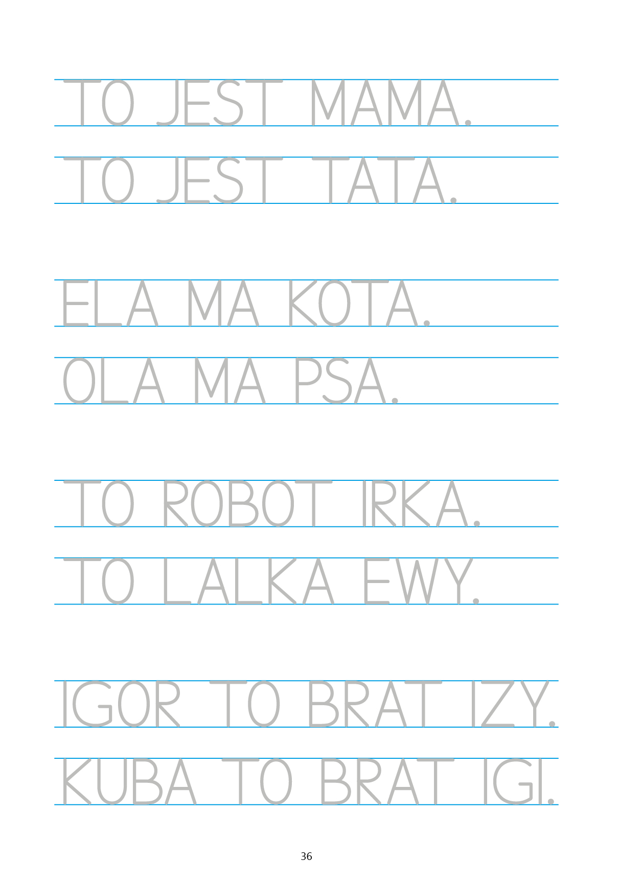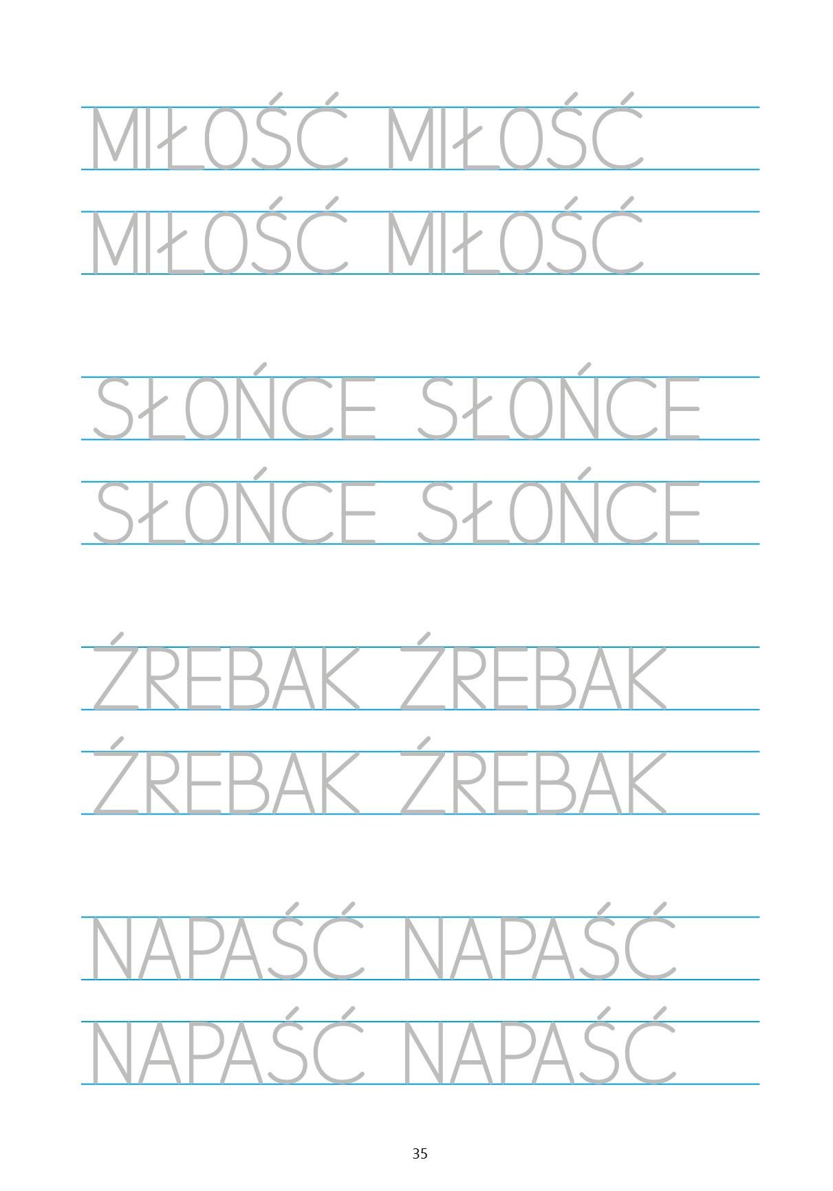 W pierwszej części publikacji uczeń przede wszystkim ćwiczył kreślenie liter drukowanych w dużych, stopniowo zmniejszających się liniaturach. W tej książce – doskonali pisanie liter oraz wyrazów w małej liniaturze.