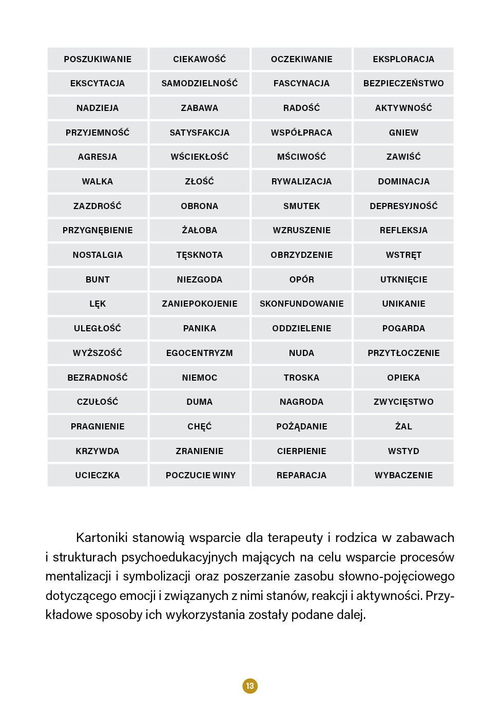 - 72 kartoniki z nazwami emocji, uczuć i stanów emocjonalnych