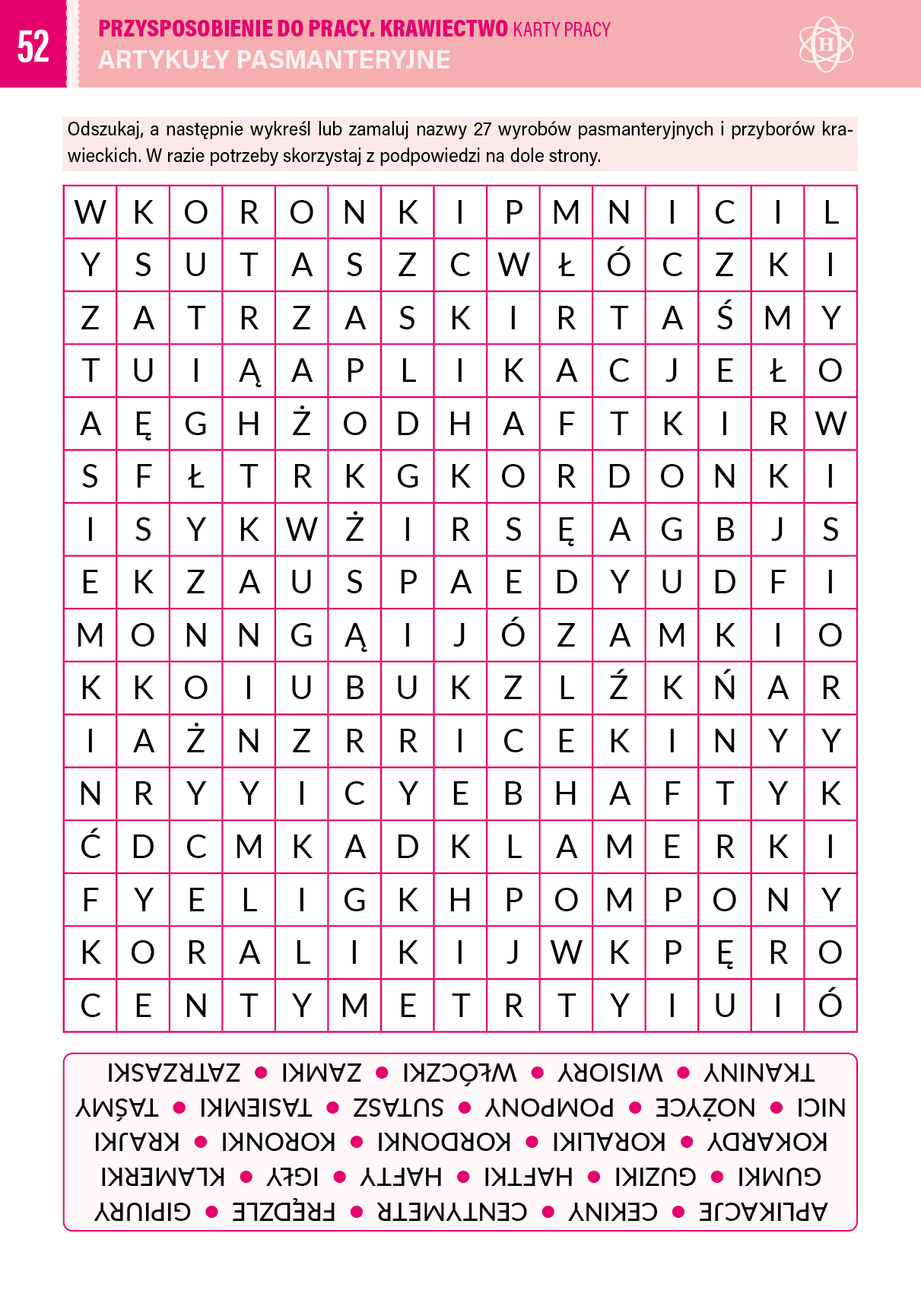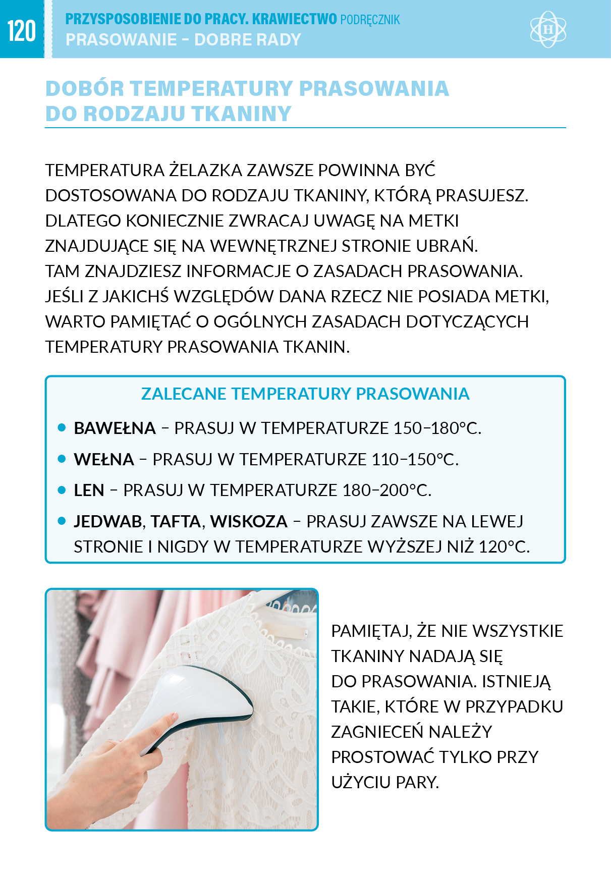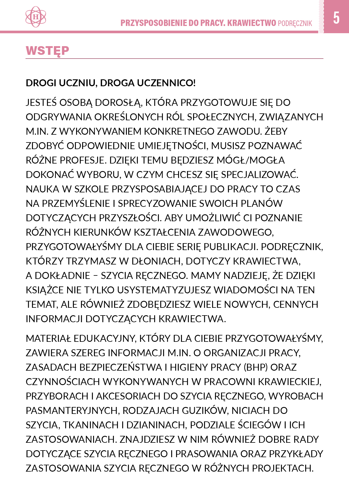 - organizacja pracowni krawieckiej oraz obowiązujące w niej zasady BHP