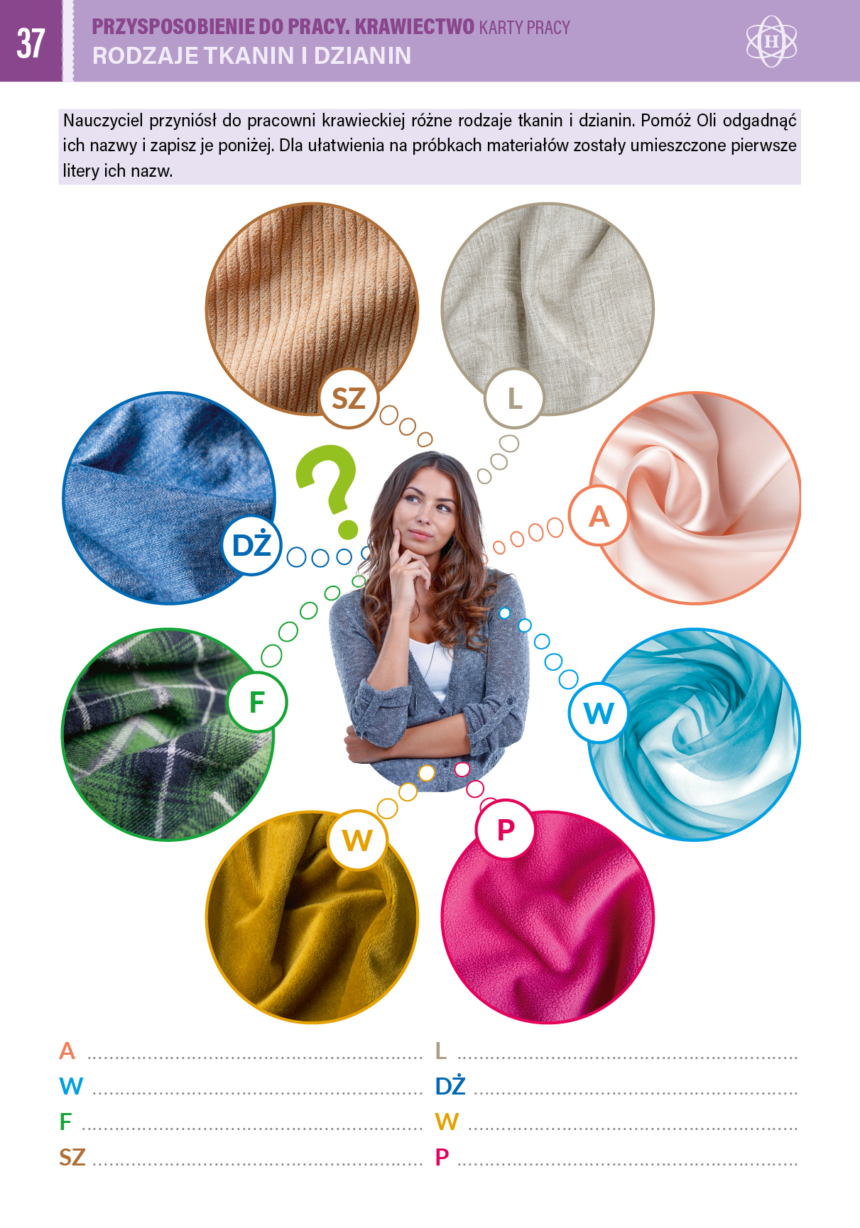 - rodzaje tkanin, dzianin oraz nici do szycia