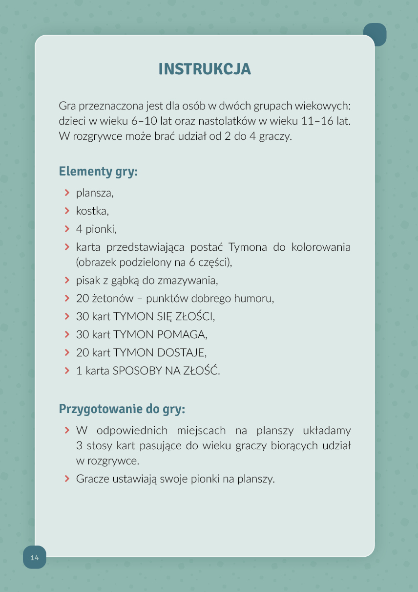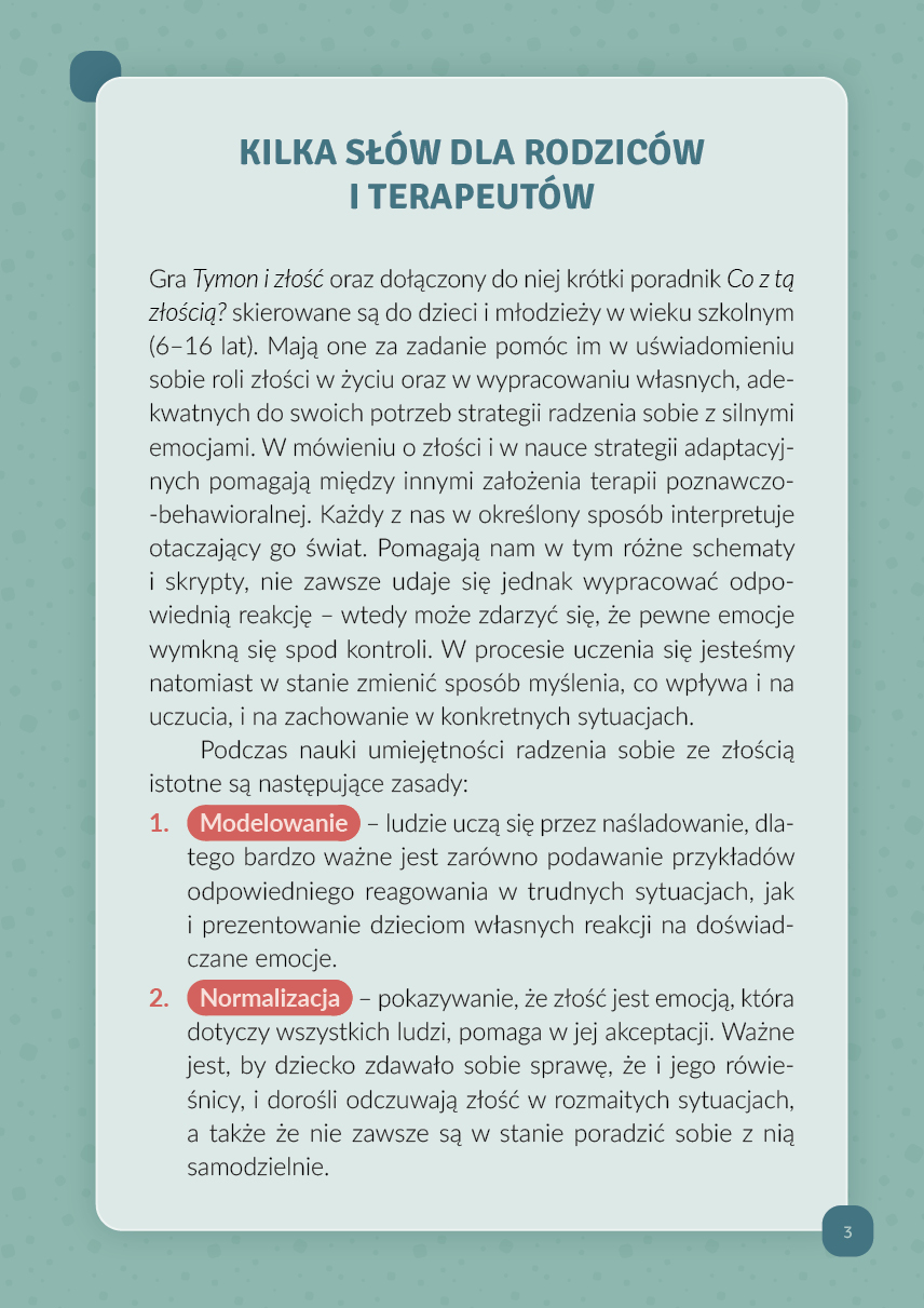 - zeszyt z poradnikiem „Co z tą złością” i instrukcją gry.